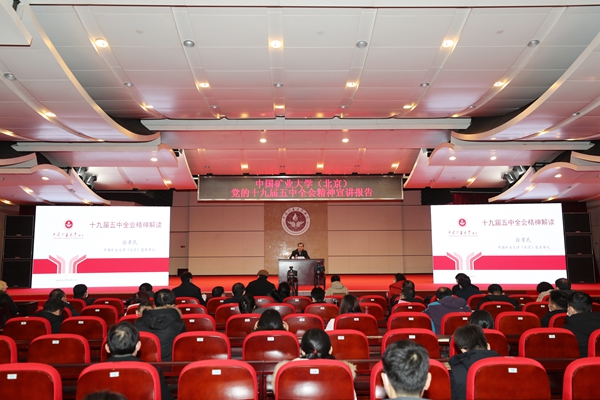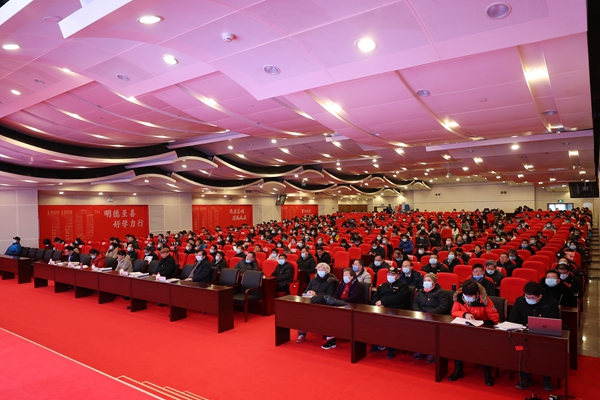 12月8日下午,校党委书记徐孝民在科技会堂就学习贯彻党的十九届五中全会精神讲授专题党课。教育部党建联络员、北京化工大学原党委书记王芳出席报告会。校长、党委副书记葛世荣,校党委副书记、纪委书记董晞,副校长王家臣、刘波,全校科级以上干部和党支部书记等500多人聆听党课。
