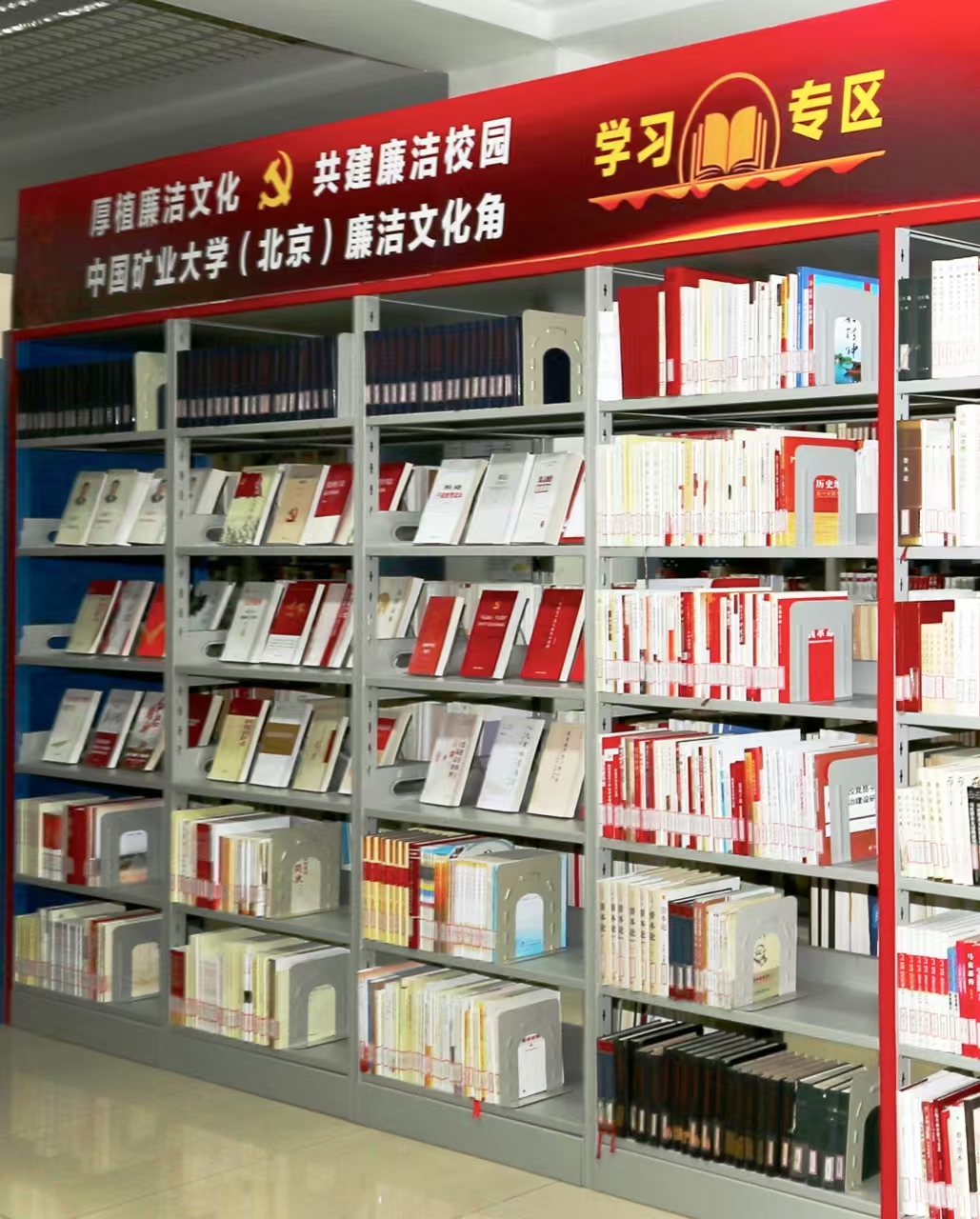 为进一步加强新时代廉洁文化建设,学校不断拓宽廉洁文化宣传阵地,纪委办公室、党委宣传部、学生工作处、沙河校区管委会、图书馆等部门协同联动、密切配合,在学院路校区图书馆中文社科图书书库和沙河校区八号楼“一站式”学生社区,因地制宜建设了校园廉洁文化角。
