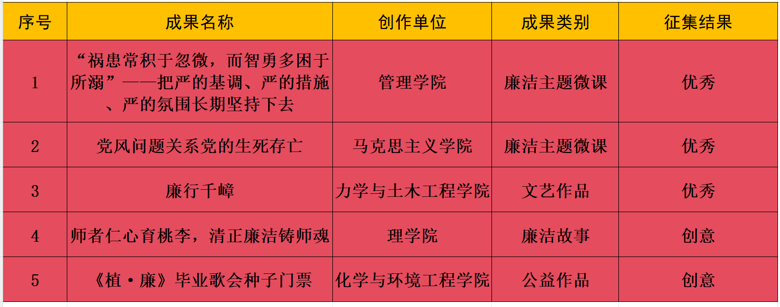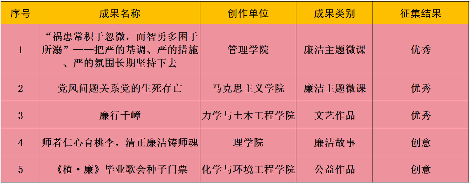近日,北京市委教育工委公布了2025年北京高校廉洁文化建设成果征集结果,我校选送的廉洁文化建设成果作品5件入选,其中优秀成果3件,创意成果2件。创历年最好成绩!