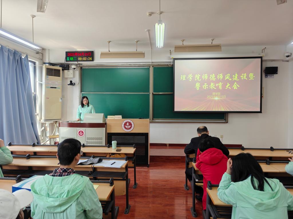 4月15日,理学院2025年度师德师风建设暨警示教育大会在学院路教学楼201召开,学院班子和全体教职工参会,学院党委书记张蕊主持会议。