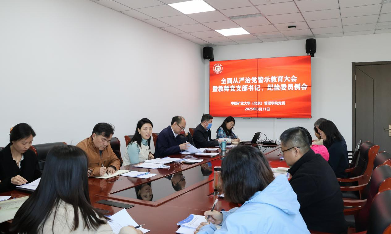 3月31日,管理学院在理化楼409会议室召开2025年全面从严治党警示教育大会暨教师党支部书记、纪检委员例会。学院党委委员、纪委委员、各教师党支部书记、纪检委员、各系主任参加会议,会议由院党委书记高洁主持。